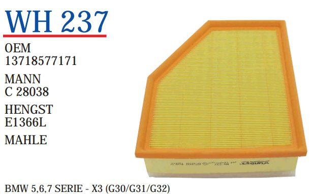 OEM 13718577171 MANN C 28038 HENGST E1366L MAHLE BMW 5,6,7 SERIE – X3 (G30/G31/G32)